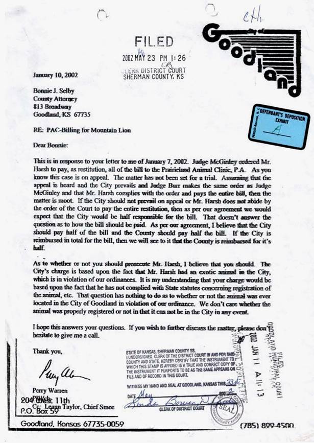 the Garden City Zoo. The county sued me for the $2000.00, plus all their fines